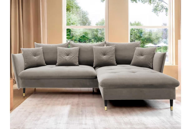 Rohová sedací souprava v elegantním glamour stylu působí pohodlně – a to nejen na pohled, pohodlná totiž opravdu je. Příjemně vypolstrované sezení, velké polštáře a relaxační otoman si snadno oblíbíte. Očalouněna látkou sametového vzhledu v odstínu béžová. Elegantní design navíc podtrhují stabilní černo-zlaté kovové nohy, pod které se snadno dostane třeba i váš robotický vysavač. Provedení sedačky s otomanem vytváří pravý roh. Pod sedákem je ukrytý praktický ukládací prostor a sedačku lze využít i pro příležitostné spaní díky rozkládací funkci. Svými rozměry snadno pasuje do téměř každého rohu obýváku, kde vytvoří útulné domácí prostředí.