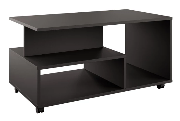 Konferenční stolek na kolečkách je navržen tak, aby různě velké přihrádky mohly poskytnout prostor pro odkládání různě velkých věcí, které pak budete mít ve svém obýváku snadno vždy po ruce. Vyroben v antracitové barvě.