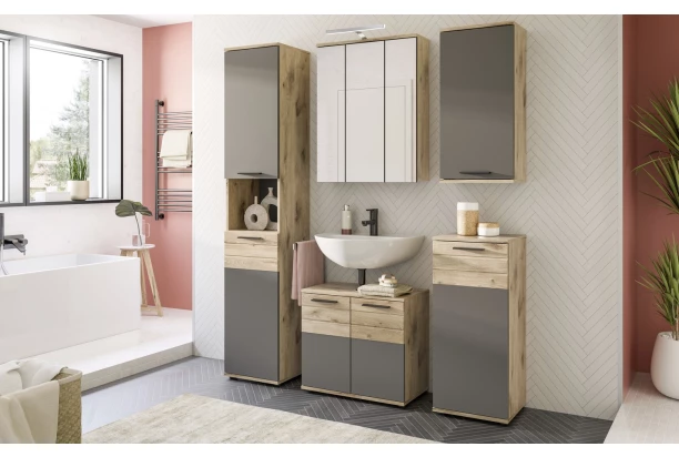 Koupelnová stojací skříňka Mason, dub/šedá