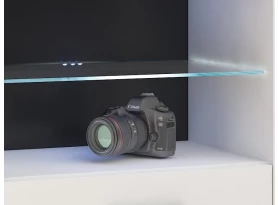 - materiál: laminovaná dřevotříska 16 mm, MDF, kov, čiré/černé sklo