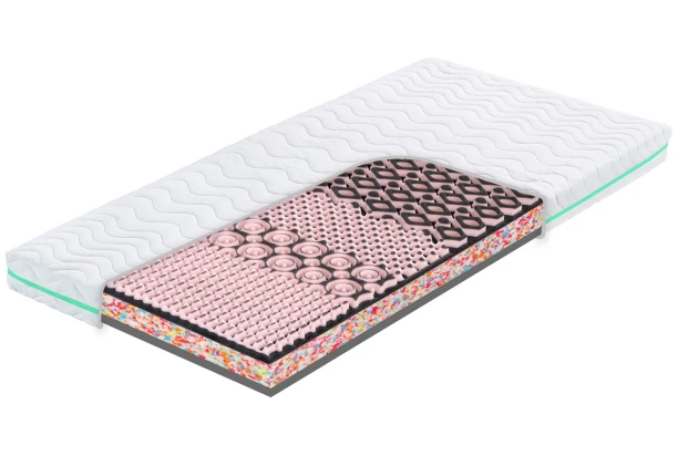 Unikátní spojení vzdušnosti a pružnosti, pro celoroční radost z hlubokého spánku. Oboustranná matrace o rozměru 90×200 cm s 3D Rainbow technogií, zvýšenou tuhostí a nosností, dvěma ložnými stranami o různém komfortu, 7 zónami a příjemným potahem s výtažky z aloe. Snímatelný potah je dvoudílný a jednoduše pratelný.