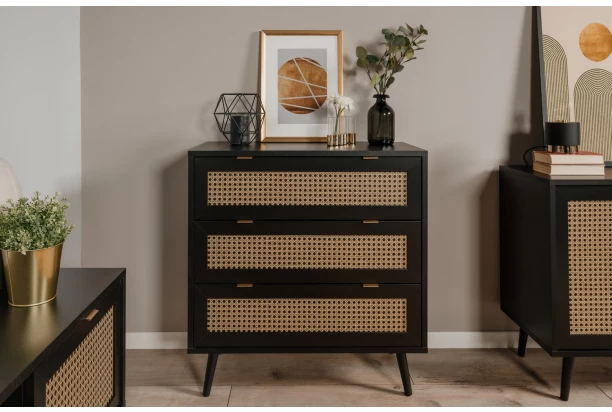 Zásuvková komoda Vienna, černá/výplet