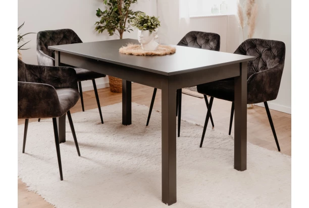 Obdélný jídelní stůl v antracitové šedé barvě a o ploše 137×80 cm je vybaven rozkládací funkcí, díky které získá šířku 177 cm. Univerzálním stylem se hodí do moderního i klasického domova.