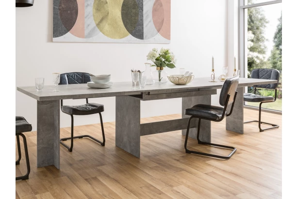 Velký rozkládací jídelní stůl v imitaci šedý beton je ideální i pro početnou rodinu. Původní plochu 160×90 cm lze postupně rozšiřovat na 210 cm nebo 260 cm anebo až extra šířku 310 cm. Snadno a rychle se tak přizpůsobí vaší aktuální potřebě. Dvojitá podnož i zesílená jídelní plocha dodávají stolu potřebnou stabilitu během manipulace.