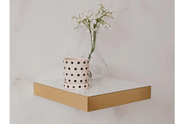 Police na zeď Shelvy 23,5 cm, bílá lesk/zlatá