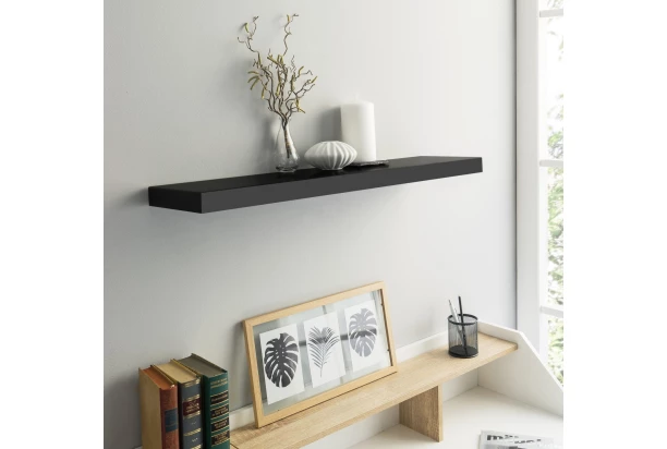 Police na zeď o šířce 80 cm v barvě černá mat – jednoduchý univerzální design pasuje do každého interieru i místnosti. Kovové konzoly pro zavěšení jsou prakticky ukryty ze zadní strany.