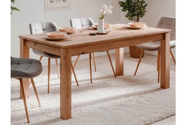 Jídelní stůl z kolekce Bergen – obdélný stůl o velikosti 160×90 cm je vyroben v dřevodekoru dub artisan. Široké rámy a mohutné nohy poskytují stolu potřebnou stabilitu. Díky rozkládací funkci lze plochu stolu rozšířit na 215 cm a pohostit tak celou rodinu a přátele.
