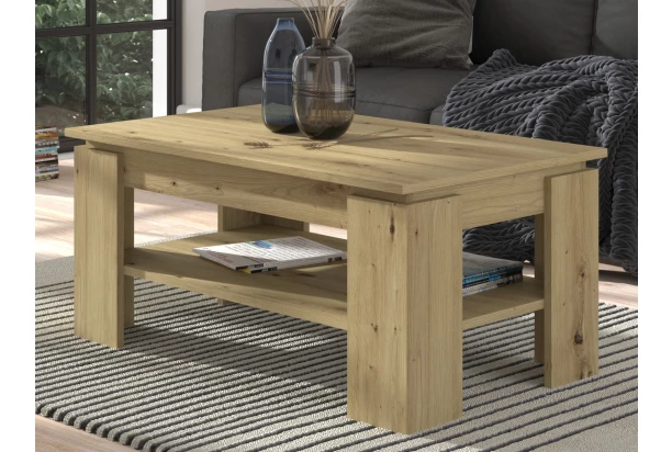 Obdélný konferenční stolek se širokými rámy poskytuje dobrou stabilitu a zároveň se univerzálně hodí do jakéhokoliv obýváku. Vyroben v dřevodekoru dub artisan. Do spodní odkládací přihrádky můžete odkládat noviny, časopisy, dálkové ovladače nebo třeba dekorace. Díky univerzálnímu stylu bude dobře pasovat jak k moderní, tak i ke klasické sedačce.