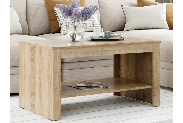 Obdélný konferenční stolek o velikosti 100×60 cm je vyroben v dekoru dub sonoma a má prakticky zvětšenou konstrukci na výšku 54 cm.