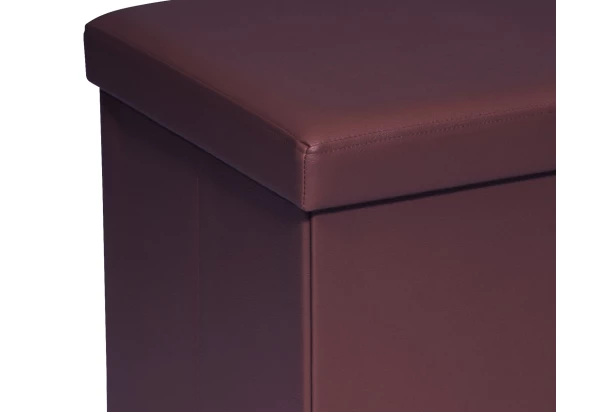 Čtvercový taburet má jednoduše skládací konstrukci a pod sedákem ukrývá praktický úložný prostor. Taburet je potažen ekokůží v barvě hnědá.