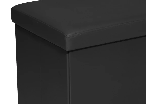 Obdélný taburet má jednoduše skládací konstrukci a pod sedákem ukrývá praktický úložný prostor. Taburet je potažen ekokůží v barvě černá.