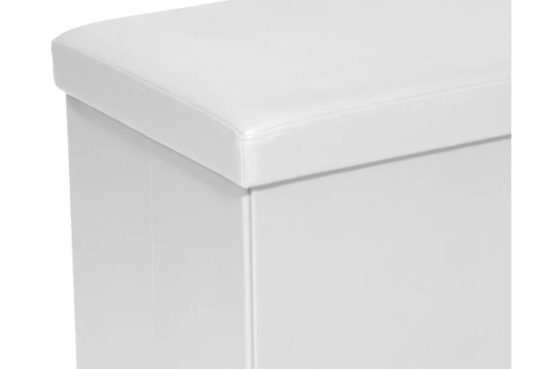 Obdélný taburet má jednoduše skládací konstrukci a pod sedákem ukrývá praktický úložný prostor. Taburet je potažen ekokůží v barvě bílá.