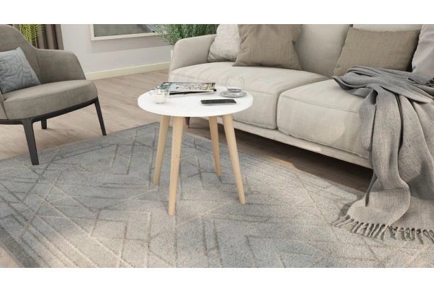 Kulatý konferenční/odkládací stolek na dřevěných nožkách vypadá útulně. Odkládací plocha stolku o průměru 50 cm je vyrobena v bílém provedení. Stolek je stabilní a zároveň působí v prostoru interieru vzdušně.