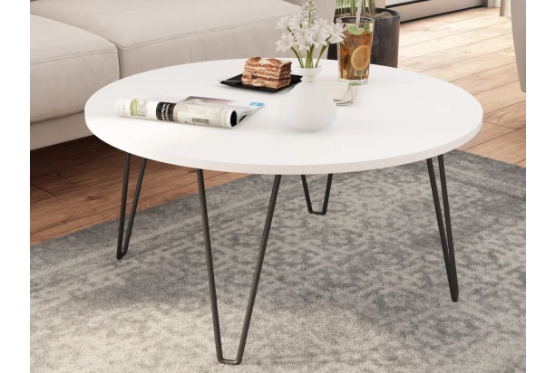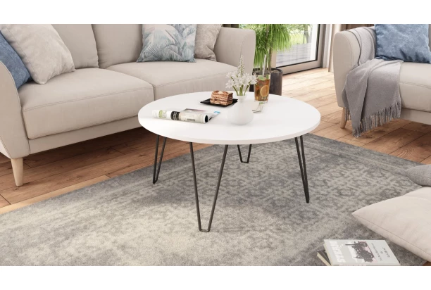 Kulatý konferenční stolek o průměru 80 cm je vyroben v bílém provedení a skvěle doplní stylově zařízený obývák. Černá kovová podnož je stabilní a zároveň působí vzdušně.