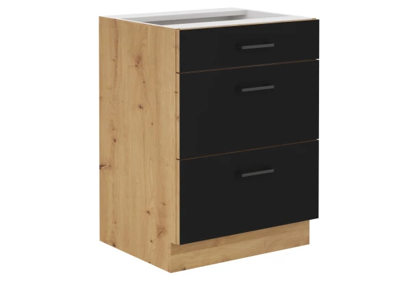 Dolní zásuvková kuchyňská skříňka Modena, 60 cm, dub artisan/černá
