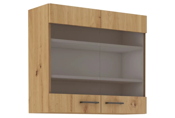 Horní prosklená kuchyňská skříňka Modena, 80 cm, dub artisan
