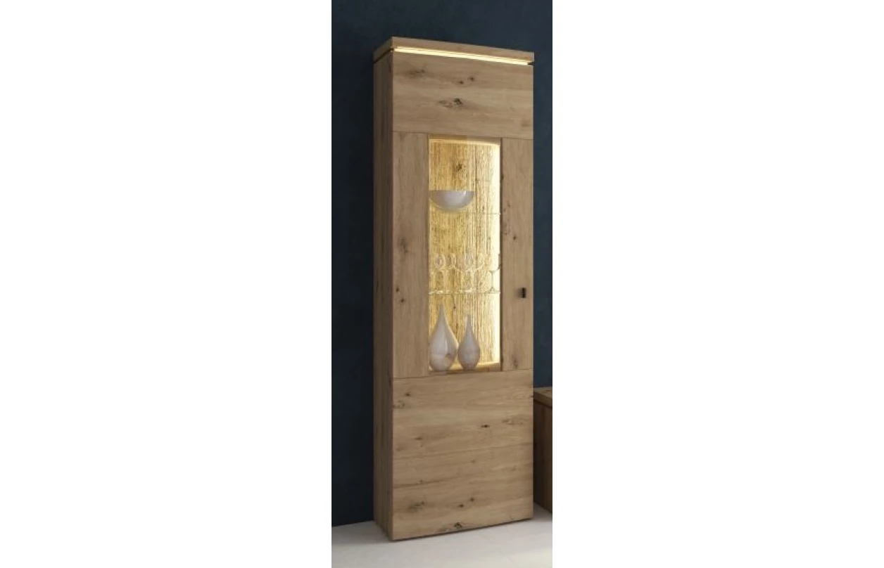 Prosklená skříňka Bolus, dub artisan, s osvětlením