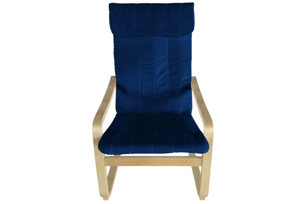 Klasické relaxační křeslo s dřevěnými područkami pro příjemné odpočinkové sezení nejen v prostoru obýváku. Látkový potah v barvě námořnická modrá.