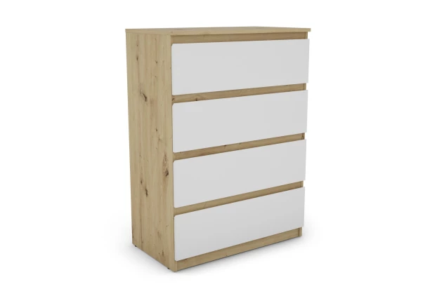 Komoda o šířce 75 cm se 4 zásuvkami v dekoru dub artisan/bílá nabízí praktické úložné prostory, účelnost a čisté linie tvarů, které se hodí do každého interieru.