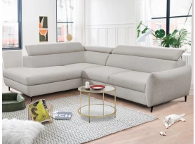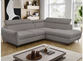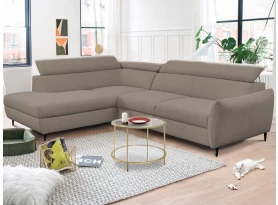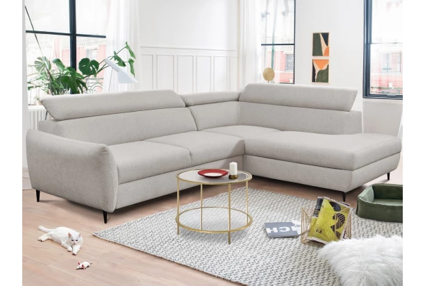 Rohová sedací souprava v elegantním designu překvapí velmi komfortním sezením. Pohodlně měkké sedáky s polohováním zádových opěrek se postarají o vaši každodenní pohodu. V případě potřeby můžete využít praktický úložný prostor pod otomanem, který vytváří pravý roh. Rozkládací funkci pro příležitostné spaní ocení nejen vaše návštěva. Rohová sedačka je očalouněna příjemně měkkou látkou v odstínu světlá šedohnědá. Díky černým kovovým nožkám působí sedačka v interiéru moderně a zároveň vzdušně.