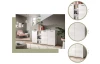 - 1 x pravé dveře (úložný prostor, 2 x police – výškově nastavitelná, doporučená nosnost police do 5 kg)