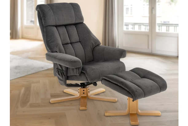 Relaxační křeslo s taburetem Merita, antracitová látka