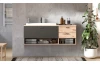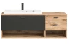 Závěsná koupelnová skříňka s umyvadlem z programu Grado – objevte skvělou kombinaci moderního stylu a praktického využití pro váš domov. Nábytek v dřevodekoru dub nox s šedými plochami působí v prostoru koupelny útulně. Tato praktická nástěnná skříňka o šířce 138 cm nabízí pod umyvadlem dostatek úložného prostoru pro uložení koupelnových potřeb a ručníků, do zásuvek a otevřených přihrádek můžete uložit například kosmetiku nebo hygienické potřeby. Skříňka je vyrobena z kvalitních materiálů a má stabilní a odolnou konstrukci. Snadno udržovatelné povrchy umožňují snadné čištění a údržbu, což zaručuje dlouhou životnost. Díky zavěšení na stěnu můžete snadno udržovat podlahu v prostoru koupelny.