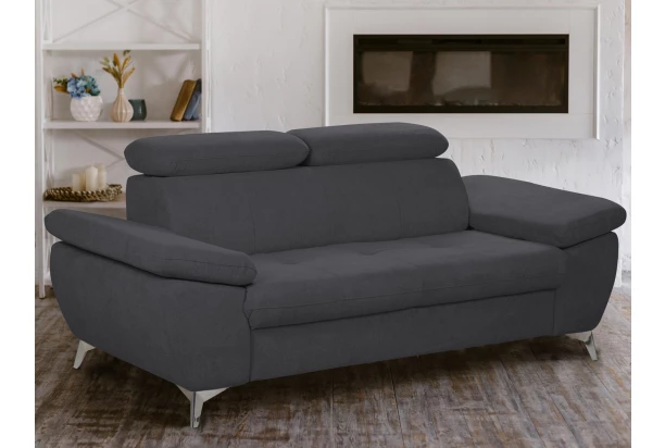 Moderní trojsedák v trendovém stylu nabízí komfortní sezení, které navíc doplňují polohovatelné područky a polohovatelné zádové opěrky – snadno si tak můžete přizpůsobit styl sezení podle Vaší individuální potřeby. Trojmístná pohovka je očalouněna příjemně měkkou strukturovanou látkou v odstínu antracitová tmavě šedá. Kovová podnož v chromově lesklém provedení působí vzdušně a navíc umožňuje využít i váš robotický vysavač. Trojsedák pro komfortní, moderní a zároveň praktickou domácnost.