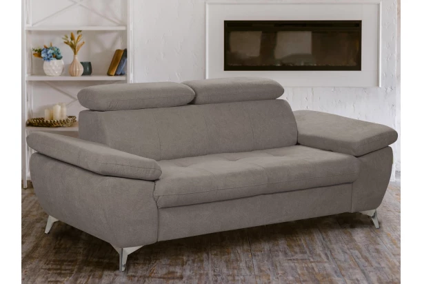 Moderní trojsedák v trendovém stylu nabízí komfortní sezení, které navíc doplňují polohovatelné područky a polohovatelné zádové opěrky – snadno si tak můžete přizpůsobit styl sezení podle Vaší individuální potřeby. Trojmístná pohovka je očalouněna příjemně měkkou strukturovanou látkou v odstínu hnědo-béžová taupe. Kovová podnož v chromově lesklém provedení působí vzdušně a navíc umožňuje využít i váš robotický vysavač. Trojsedák pro komfortní, moderní a zároveň praktickou domácnost.
