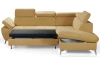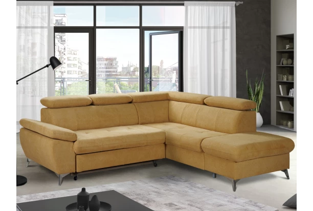 Moderní rohová sedací souprava v trendovém stylu nabízí komfortní sezení, které navíc doplňují polohovatelné područky a polohovatelné zádové opěrky – snadno si tak můžete přizpůsobit styl sezení podle Vaší individuální potřeby. Rohová sedačka tvoří pravý roh a je očalouněna příjemně měkkou strukturovanou látkou v odstínu žlutá. Kovová podnož v chromově lesklém provedení působí vzdušně a navíc umožňuje využít i váš robotický vysavač. Tato sedačka je zároveň vybavena rozkládací funkcí na příležitostné lůžko a také úložným prostorem pod otomanem. Zkrátka sedačka pro komfortní, moderní a zároveň praktickou domácnost.