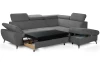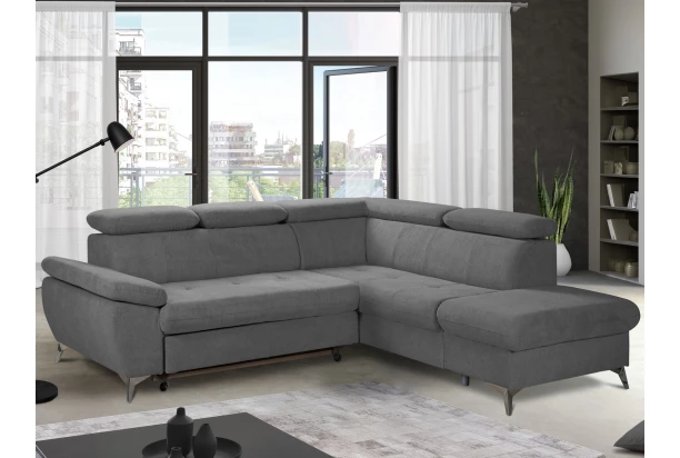 Moderní rohová sedací souprava v trendovém stylu nabízí komfortní sezení, které navíc doplňují polohovatelné područky a polohovatelné zádové opěrky – snadno si tak můžete přizpůsobit styl sezení podle Vaší individuální potřeby. Rohová sedačka tvoří pravý roh a je očalouněna příjemně měkkou strukturovanou látkou v odstínu kamenná středně šedá. Kovová podnož v chromově lesklém provedení působí vzdušně a navíc umožňuje využít i váš robotický vysavač. Tato sedačka je zároveň vybavena rozkládací funkcí na příležitostné lůžko a také úložným prostorem pod otomanem. Zkrátka sedačka pro komfortní, moderní a zároveň praktickou domácnost.