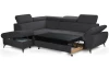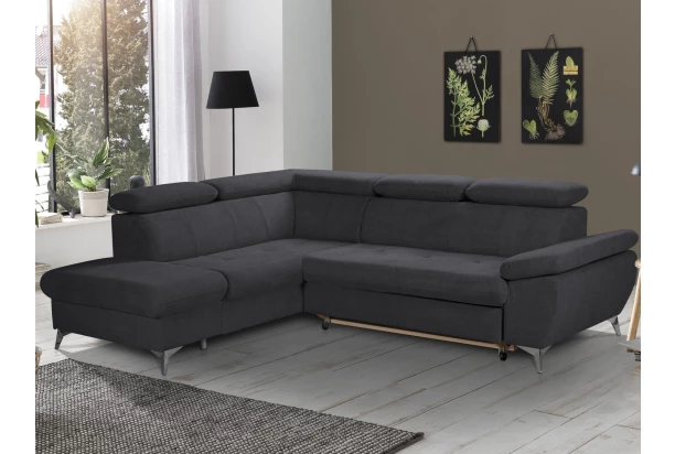 Moderní rohová sedací souprava v trendovém stylu nabízí komfortní sezení, které navíc doplňují polohovatelné područky a polohovatelné zádové opěrky – snadno si tak můžete přizpůsobit styl sezení podle Vaší individuální potřeby. Rohová sedačka tvoří levý roh a je očalouněna příjemně měkkou strukturovanou látkou v odstínu antracitová tmavě šedá. Kovová podnož v chromově lesklém provedení působí vzdušně a navíc umožňuje využít i váš robotický vysavač. Tato sedačka je zároveň vybavena rozkládací funkcí na příležitostné lůžko a také úložným prostorem pod otomanem. Zkrátka sedačka pro komfortní, moderní a zároveň praktickou domácnost.