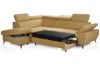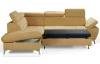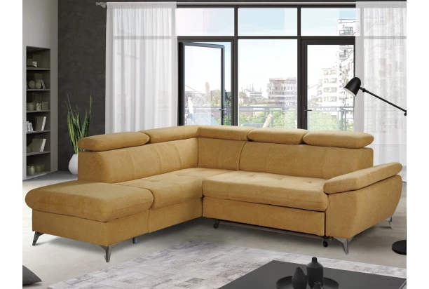 Moderní rohová sedací souprava v trendovém stylu nabízí komfortní sezení, které navíc doplňují polohovatelné područky a polohovatelné zádové opěrky – snadno si tak můžete přizpůsobit styl sezení podle Vaší individuální potřeby. Rohová sedačka tvoří levý roh a je očalouněna příjemně měkkou strukturovanou látkou v odstínu žlutá. Kovová podnož v chromově lesklém provedení působí vzdušně a navíc umožňuje využít i váš robotický vysavač. Tato sedačka je zároveň vybavena rozkládací funkcí na příležitostné lůžko a také úložným prostorem pod otomanem. Zkrátka sedačka pro komfortní, moderní a zároveň praktickou domácnost.