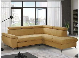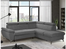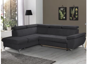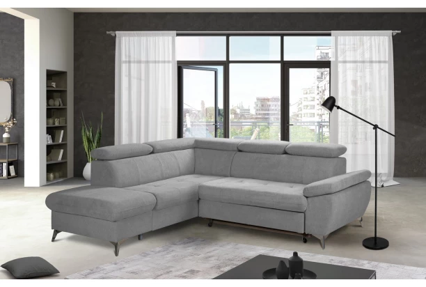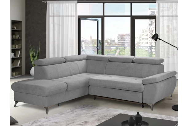Moderní rohová sedací souprava v trendovém stylu nabízí komfortní sezení, které navíc doplňují polohovatelné područky a polohovatelné zádové opěrky – snadno si tak můžete přizpůsobit styl sezení podle Vaší individuální potřeby. Rohová sedačka tvoří levý roh a je očalouněna příjemně měkkou strukturovanou látkou v odstínu světle šedá. Kovová podnož v chromově lesklém provedení působí vzdušně a navíc umožňuje využít i váš robotický vysavač. Tato sedačka je zároveň vybavena rozkládací funkcí na příležitostné lůžko a také úložným prostorem pod otomanem. Zkrátka sedačka pro komfortní, moderní a zároveň praktickou domácnost.
