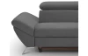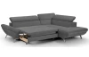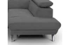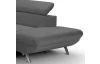 Rohová sedací souprava zaujme moderním designem tvarů. Oceníte pohodlné sezení, které doplňují polohovatelné zádové opěrky, díky kterým si přizpůsobíte styl sezení podle aktuální potřeby. Rohová sedačka s otomanem tvoří pravý roh a je očalouněna jemně strukturovanou látkou v odstínu kouřově šedá. Pod otomanem najdete praktický úložný prostor. Sedačku můžete díky rozkládací funkci snadno proměnit na lůžko pro příležitostné spaní. Moderní kovová podnož koresponduje s tvary sedačky a umožňuje využít během úklidu i váš robotický vysavač. Tato pohodlná rohová sedačka rozměrově dobře pasuje i do menšího prostoru obýváku.