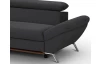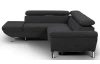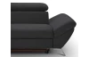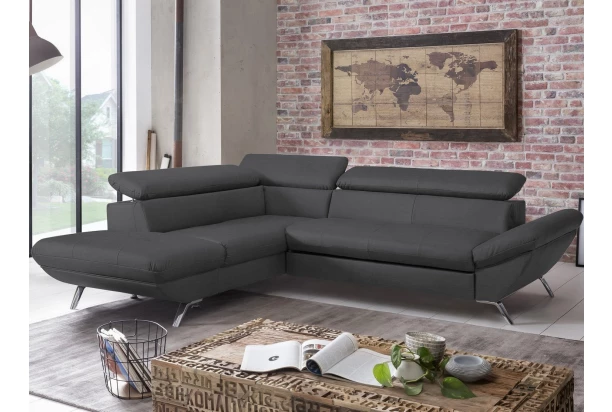 Rohová sedací souprava zaujme moderním designem tvarů. Oceníte pohodlné sezení, které doplňují polohovatelné zádové opěrky, díky kterým si přizpůsobíte styl sezení podle aktuální potřeby. Rohová sedačka s otomanem tvoří levý roh a je očalouněna jemně strukturovanou látkou v barvě černá. Pod otomanem najdete praktický úložný prostor. Sedačku můžete díky rozkládací funkci snadno proměnit na lůžko pro příležitostné spaní. Moderní kovová podnož koresponduje s tvary sedačky a umožňuje využít během úklidu i váš robotický vysavač. Tato pohodlná rohová sedačka rozměrově dobře pasuje i do menšího prostoru obýváku.