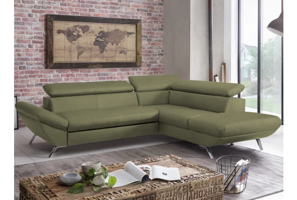 Rohová sedací souprava Estelle, olivově zelená látka, pravý roh