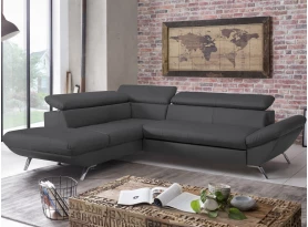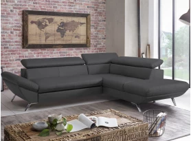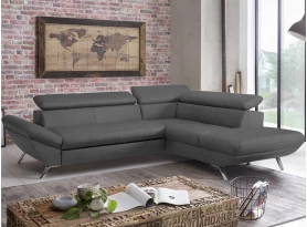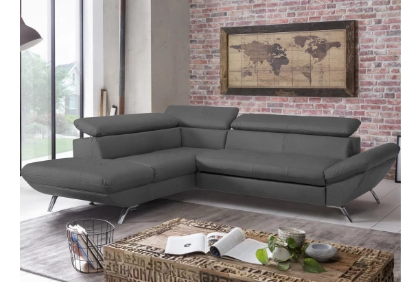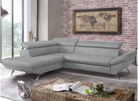 Rohová sedací souprava zaujme moderním designem tvarů. Oceníte pohodlné sezení, které doplňují polohovatelné zádové opěrky, díky kterým si přizpůsobíte styl sezení podle aktuální potřeby. Rohová sedačka s otomanem tvoří levý roh a je očalouněna jemně strukturovanou látkou v odstínu kouřově šedá. Pod otomanem najdete praktický úložný prostor. Sedačku můžete díky rozkládací funkci snadno proměnit na lůžko pro příležitostné spaní. Moderní kovová podnož koresponduje s tvary sedačky a umožňuje využít během úklidu i váš robotický vysavač. Tato pohodlná rohová sedačka rozměrově dobře pasuje i do menšího prostoru obýváku.