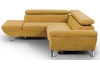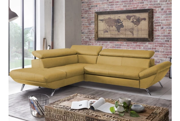 Rohová sedací souprava zaujme moderním designem tvarů. Oceníte pohodlné sezení, které doplňují polohovatelné zádové opěrky, díky kterým si přizpůsobíte styl sezení podle aktuální potřeby. Rohová sedačka s otomanem tvoří levý roh a je očalouněna jemně strukturovanou látkou v odstínu hořčicově žlutá. Pod otomanem najdete praktický úložný prostor. Sedačku můžete díky rozkládací funkci snadno proměnit na lůžko pro příležitostné spaní. Moderní kovová podnož koresponduje s tvary sedačky a umožňuje využít během úklidu i váš robotický vysavač. Tato pohodlná rohová sedačka rozměrově dobře pasuje i do menšího prostoru obýváku.