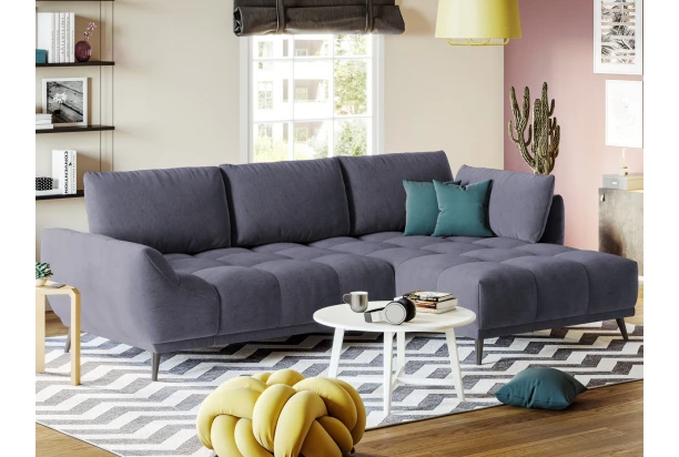 Rohová sedačka Allegra zaujme zajímavým designem a zároveň vytvoří pohodlné zákoutí v prostoru každého obýváku. Zaoblené tvary sedačky doplňuje výrazné prošívání komfortního prostorného sedáku a velké polštáře. Rohová sedací souprava s bočním otomanem tvoří pravý roh. Očalouněna měkkou a jemně strukturovanou látkou v barvě hlubinná modrá. Sedačku lze díky rozkládací funkci na lůžko využít i pro příležitostné spaní. Pod sedákem navíc najdete praktický úložný prostor.