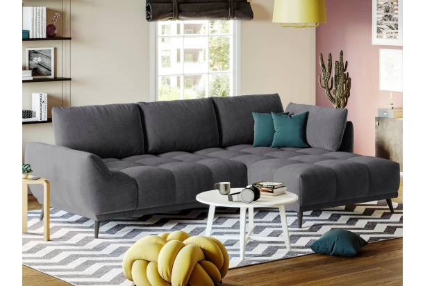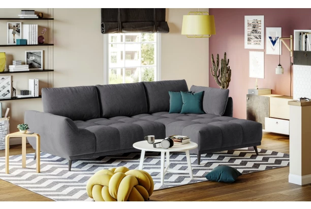 Rohová sedačka Allegra zaujme zajímavým designem a zároveň vytvoří pohodlné zákoutí v prostoru každého obýváku. Zaoblené tvary sedačky doplňuje výrazné prošívání komfortního prostorného sedáku a velké polštáře. Rohová sedací souprava s bočním otomanem tvoří pravý roh. Očalouněna měkkou a jemně strukturovanou látkou v barvě antracitová. Sedačku lze díky rozkládací funkci na lůžko využít i pro příležitostné spaní. Pod sedákem navíc najdete praktický úložný prostor.