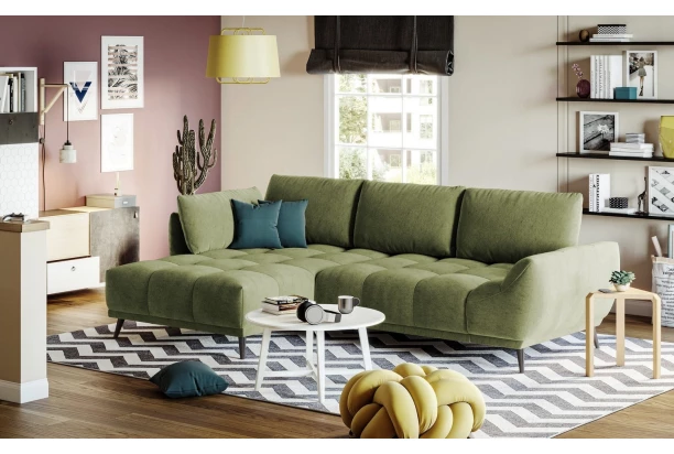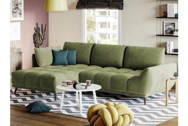 Rohová sedačka Allegra zaujme zajímavým designem a zároveň vytvoří pohodlné zákoutí v prostoru každého obýváku. Zaoblené tvary sedačky doplňuje výrazné prošívání komfortního prostorného sedáku a velké polštáře. Rohová sedací souprava s bočním otomanem tvoří levý roh. Očalouněna měkkou a jemně strukturovanou látkou v barvě trávově zelená. Sedačku lze díky rozkládací funkci na lůžko využít i pro příležitostné spaní. Pod sedákem navíc najdete praktický úložný prostor.