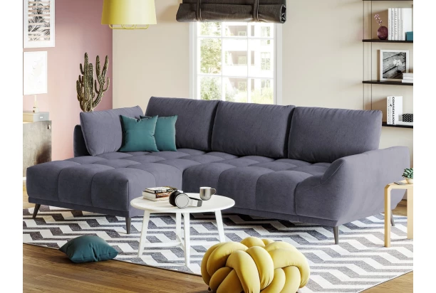 Rohová sedačka Allegra zaujme zajímavým designem a zároveň vytvoří pohodlné zákoutí v prostoru každého obýváku. Zaoblené tvary sedačky doplňuje výrazné prošívání komfortního prostorného sedáku a velké polštáře. Rohová sedací souprava s bočním otomanem tvoří levý roh. Očalouněna měkkou a jemně strukturovanou látkou v barvě hlubinná modrá. Sedačku lze díky rozkládací funkci na lůžko využít i pro příležitostné spaní. Pod sedákem navíc najdete praktický úložný prostor.