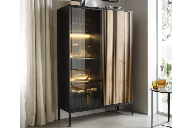 Vitrína Sento, černá/dub wotan, s osvětlením