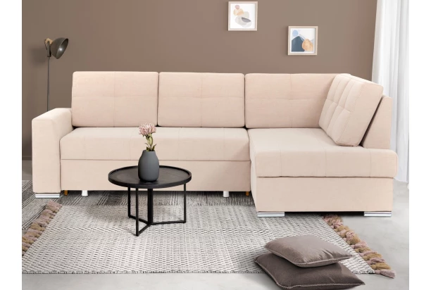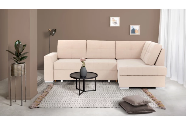 Sympaticky tvarovaná rohová sedací souprava s otomanem vytváří pravý roh. Očalouněna jemně strukturovanou látkou v barvě béžová. Obsahuje úložný prostor i funkci rozkladu na lůžko, které je možné využívat i pro trvalé spaní. Sedačka se svým stylem hodí téměř do jakkoliv zařízeného bytu, kde poskytne kvalitní pohodlné sezení.