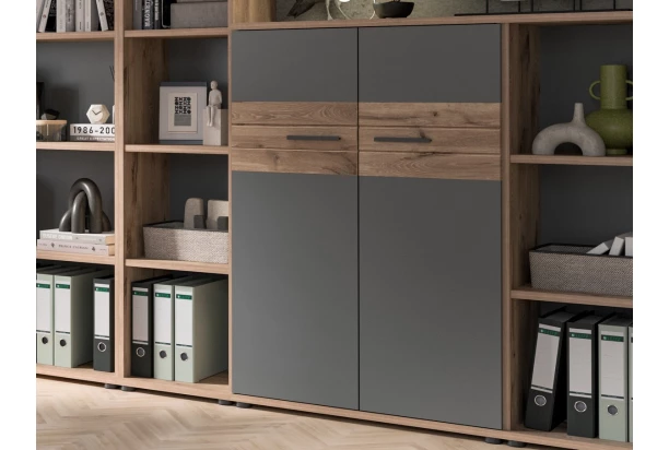 Úložná skříňka z kolekce Mason – moderní a praktický nábytek v kombinaci dubového dřevodekoru a šedých ploch ozvláštňují horizontálně frézované linie, které dodávají nábytku zajímavý efekt. Skříňka nabízí úložný prostor pro různé potřeby a předměty. Se svými kompaktními rozměry se dobře vejde do menších místností a přesto nabízí dostatek místa pro uložení knih, šanonů, ručníků a další věcí. Tato 2-dveřová skříňka je všestranná a je ideální do pracovny, koupelny, chodby i obýváku. S rozměry 80×122×37 cm nabízí tato skříňka dostatek prostoru pro přehledné uložení nejrůznějších věcí. Její moderní design a vysoce kvalitní zpracování z ní činí funkční a esteticky příjemný kus nábytku do vašeho domácího prostředí.