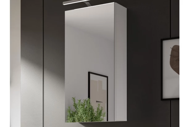 Koupelnová zrcadlová skříňka z programu Vira – nadčasový, minimalistický a zároveň funkční nábytek v bílém provedení pasuje do každé moderní koupelny. Závěsná skříňka o šířce 38 cm má otočné dveře a vnitřní úložný prostor s poličkami pro uschování kosmetiky a další toaletních potřeb.