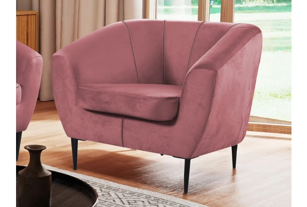Elegantní křeslo na černých kovových nohách působí vzdušně a pasuje téměř do jakéhokoliv interieru. Toto pohodlně polstrované křeslo má ergonomicky zaoblené boční područky a je očalouněno atraktivní sametovou látkou v odstínu tmavě růžová, která je na dotek hladká, příjemně hebká a zároveň odolná, navíc díky lesklému efektu působí luxusním dojmem.