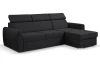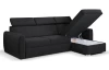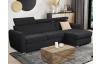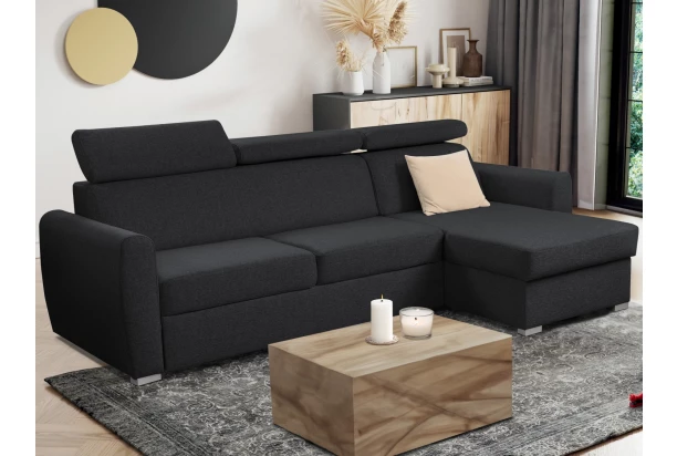 Pohodlná rohová sedací souprava se rozměrově hodí i do malého prostoru, kde nabídne pohodlně měkké sezení s polohovatelnými opěrkami hlavy. Sedačka je očalouněna odolnou látkou v barvě černá a lze univerzálně smontovat jaké pravý nebo levý roh. Pod otomanem najdete praktický úložný prostor. Funkci rozkladu pro příležitostné spaní využijete při odpočinku anebo třeba vaše víkendová návštěva.