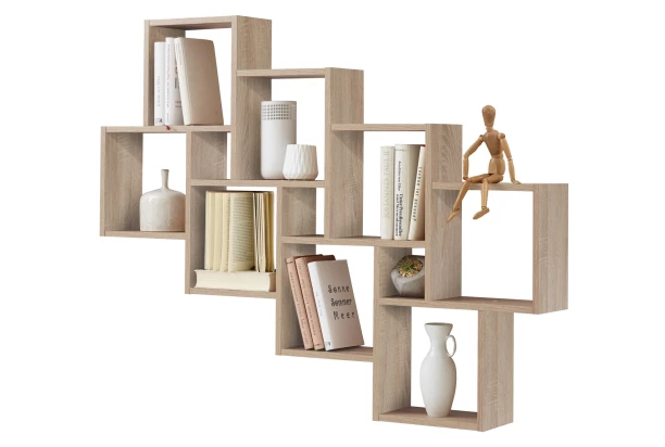 Nástěnný regál Laurio, dub sonoma, 11 přihrádek